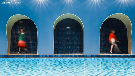 因此,如恩Neri&Hu在中興路一號(hào)Oriental One的設(shè)計(jì)上,如以往般超越傳統(tǒng)設(shè)計(jì)界限,從展示中心內(nèi)別具匠心燈籠裝置便可見一斑,幾種不同的主要色彩堆砌出如恩對(duì)東方摩登生活的理解,金磚、仿造圍爐的金箔、泳池的藍(lán)、運(yùn)動(dòng)空間的紅……,如恩糅合了諸多的對(duì)立元素,圍合與開放、明與暗、精細(xì)與厚重,展現(xiàn)東方氣質(zhì)的內(nèi)斂和親切的庇護(hù)感,繪寫出友好舒適的空間。