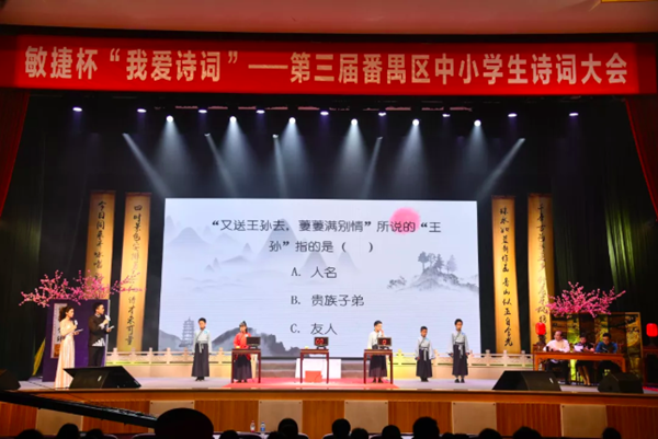 11月10日,“敏捷杯”第三屆“我愛詩詞”番禺區(qū)中小學(xué)生詩詞大會總決賽在番禺區(qū)行政會議中心圓滿落下帷幕。隨著本屆中小學(xué)生詩詞大會的成功舉辦,在廣大中小學(xué)生中乃至市民中掀起了一股學(xué)習(xí)古詩詞、傳承國學(xué)經(jīng)典的熱潮。