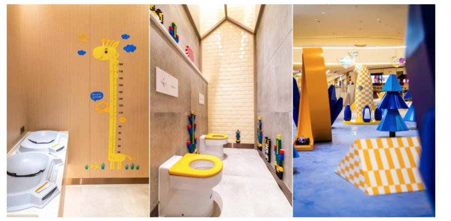 項(xiàng)目精心設(shè)計(jì)了夢(mèng)幻感十足的墻面彩繪、樂高、熱氣球、過山車、火箭、彩虹等童趣元素構(gòu)成精致感十足的兒童專屬衛(wèi)生間與母嬰室,充分凸顯項(xiàng)目親子區(qū)的品質(zhì)與品味,寶山親子新地標(biāo)呼之欲出。