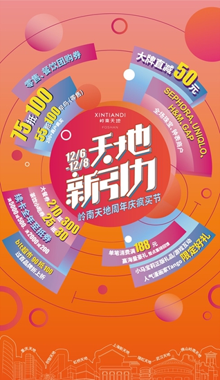 12月6日起連續(xù)三天,嶺南天地將推出開業(yè)以來最重量級的周年慶典“天地新引力”i天地會員節(jié),團購、直減、i天地會員限定好禮等多項福利,不容錯過。