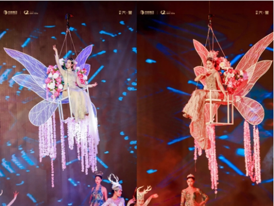 300㎡巨幅畫卷,花飛蝶舞,鳳凰于飛,再現(xiàn)敦煌飛天壯闊。