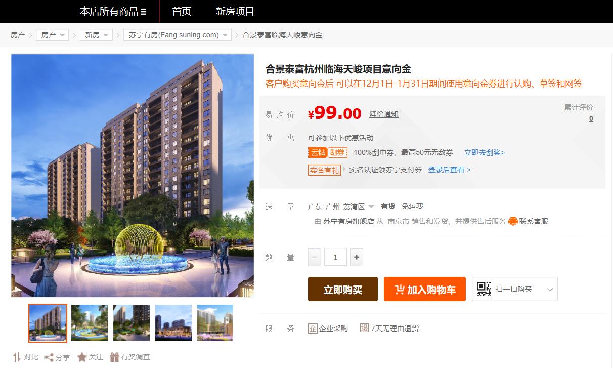 12月5日至12日,合景泰富與蘇寧易購進行合作,推出“易拍即合·High 個購”活動,期間合景泰富集團將在蘇寧易購平臺每天限量推出特價房源搶購,總共288套,合計讓利 1 個億。