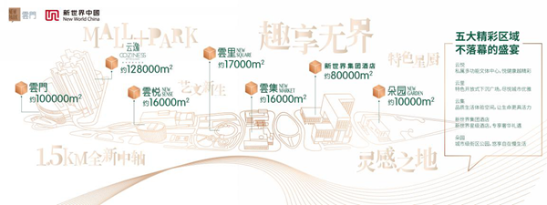 各種生活方式在不同空間中無縫切換,多維樂活體驗空間包含購物中心MALL、 私屬功能文體中心-云悅NEW SENSE、特色開放式下沉廣場-云里NEW SQUARE、品質(zhì)生活體驗空間-云集NEW MARKET、新世界集團酒店、城市級街區(qū)公園等不同功能空間,圍繞品質(zhì)生活、特色餐飲、文化娛樂、兒童體驗、五星酒店、戶外社交、健康文體、戶外公園等業(yè)態(tài)構(gòu)建出多元的商業(yè)框架,融入包含從兒童到成人各年齡層全面需求的體驗式業(yè)態(tài),滿足不同客群所需。