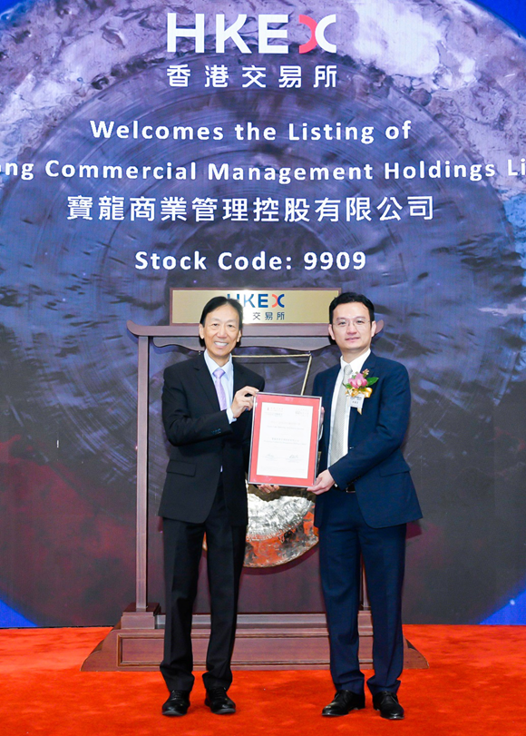 2019年12月30日,寶龍商業(yè)管理控股有限公司正式在香港聯(lián)合交易所主板掛牌交易,股票簡稱:寶龍商業(yè),股票代碼09909.HK。