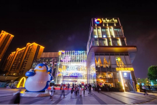 西安金地廣場(chǎng),全新的燈畫點(diǎn)亮了西安曲江,憨態(tài)可掬的帝企鵝裝置傳遞著溫暖和對(duì)世界的愛!