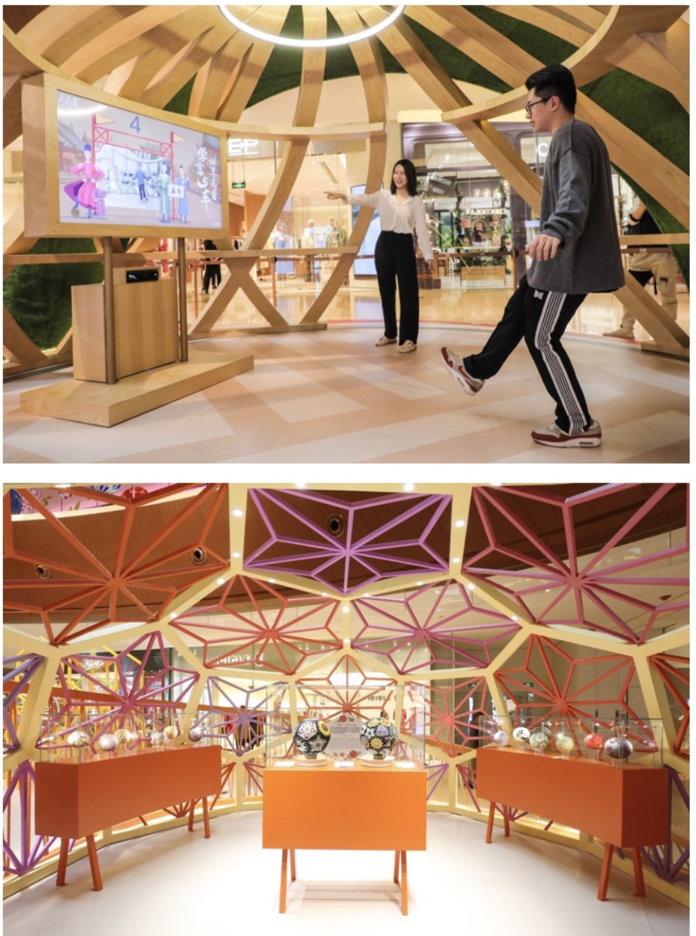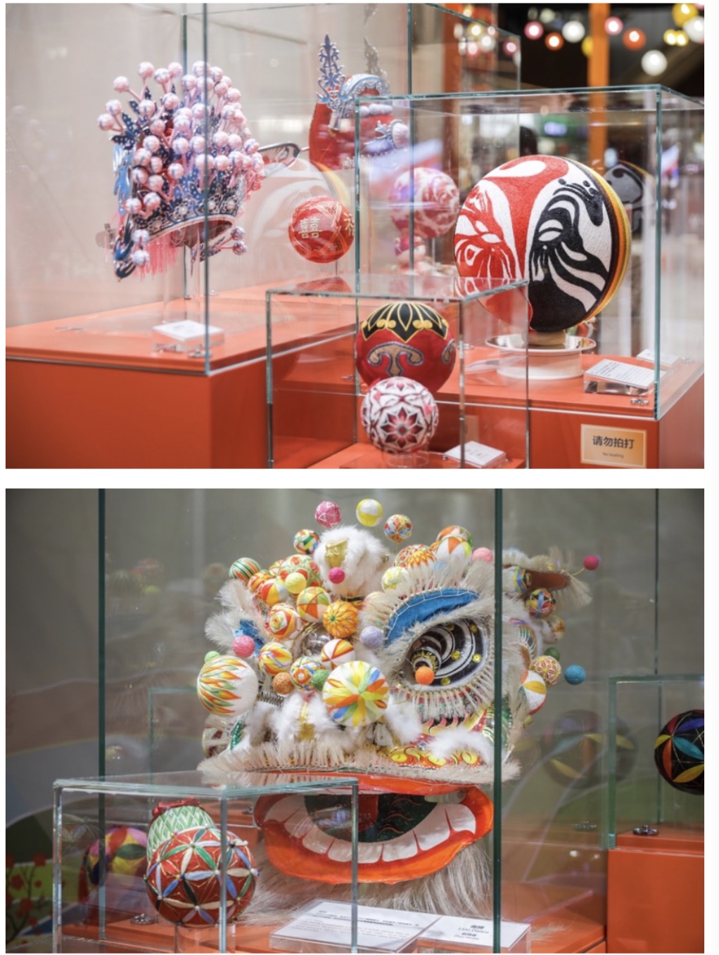 圖片7-8:廣州太古匯多個手鞠裝置同步登場,展示蹴鞠發(fā)展史和精美技藝