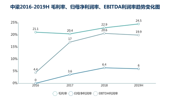 公司深耕三四線的結(jié)果是毛利率和歸母凈利率都不太好看,行業(yè)毛利率在30%左右,而中梁2019上半年24.5%的毛利率比起過往20%出頭已經(jīng)穩(wěn)步增長;歸母凈利率同樣如此,行業(yè)10%上下的歸母凈利率,中梁僅達(dá)到了6%,“叫座不叫好”的現(xiàn)象值得反思。