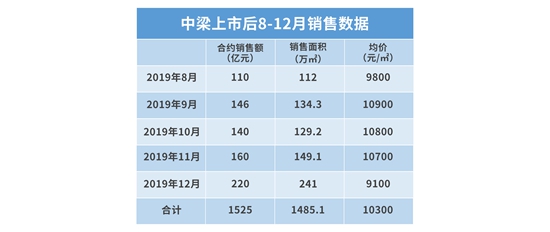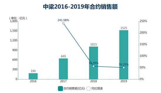 中梁2019年定下的全年目標(biāo)是1300億元,對比2018年1015億元的銷售額來說,增速大約在27%,并提前一個(gè)月完成了任務(wù),在11月達(dá)到了1305億元的銷售額。