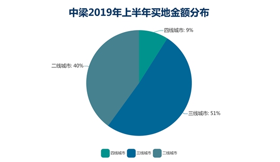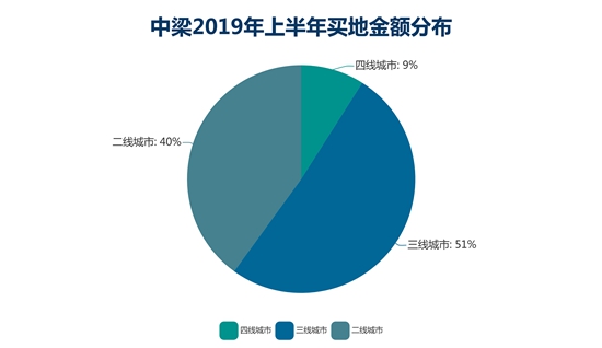 中梁在2019年上半年首次進(jìn)入了18個(gè)新城市,獲取了70個(gè)項(xiàng)目,其中包含了西安、天津、南京、南昌、福州、貴陽、大連等多個(gè)二線城市,買地金額達(dá)到320億,二線占比達(dá)到40%,三線占比51%,總建面814萬平方米,新增貨值940億元,平均地價(jià)僅為3900元/平方米。
