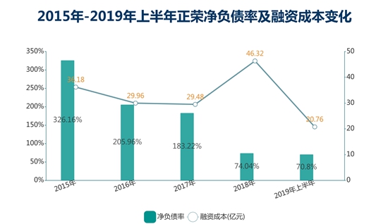 另一方面,通過不斷債務置換,債務結構更多元化,短期借貸比例進一步下降。于2019年6月30日,正榮凈債務與權益比率為70.8%。