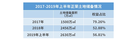 從正榮地產(chǎn)近三年土地儲備所占權益來看,2017年末所占土地儲備建筑面積權益比為79.26%,2018年末為52.88%,截至2019年6月30日56.81%。
