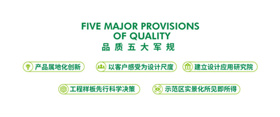 在一把手親自管控的高壓下,產(chǎn)品禁得起市場的考驗(yàn),成為新希望地產(chǎn)發(fā)展的“三條紅線”之一,形成了嚴(yán)苛的項(xiàng)目質(zhì)量管理體系,通過“品質(zhì)五大軍規(guī)”和標(biāo)準(zhǔn)化流程,解決品質(zhì)項(xiàng)目的打造和全國項(xiàng)目品質(zhì)整體提升的問題。