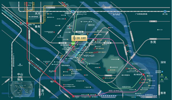 項目所在的蕉門河片區(qū)是南沙區(qū)府所在地,在不到3平方公里的土地上,集聚著南沙超80%的高端配套資源,政務(wù)、商業(yè)、人文藝術(shù)、企業(yè)總部四大中心疊加,在如此地段,星河·東悅灣可謂含著金鑰匙出生。