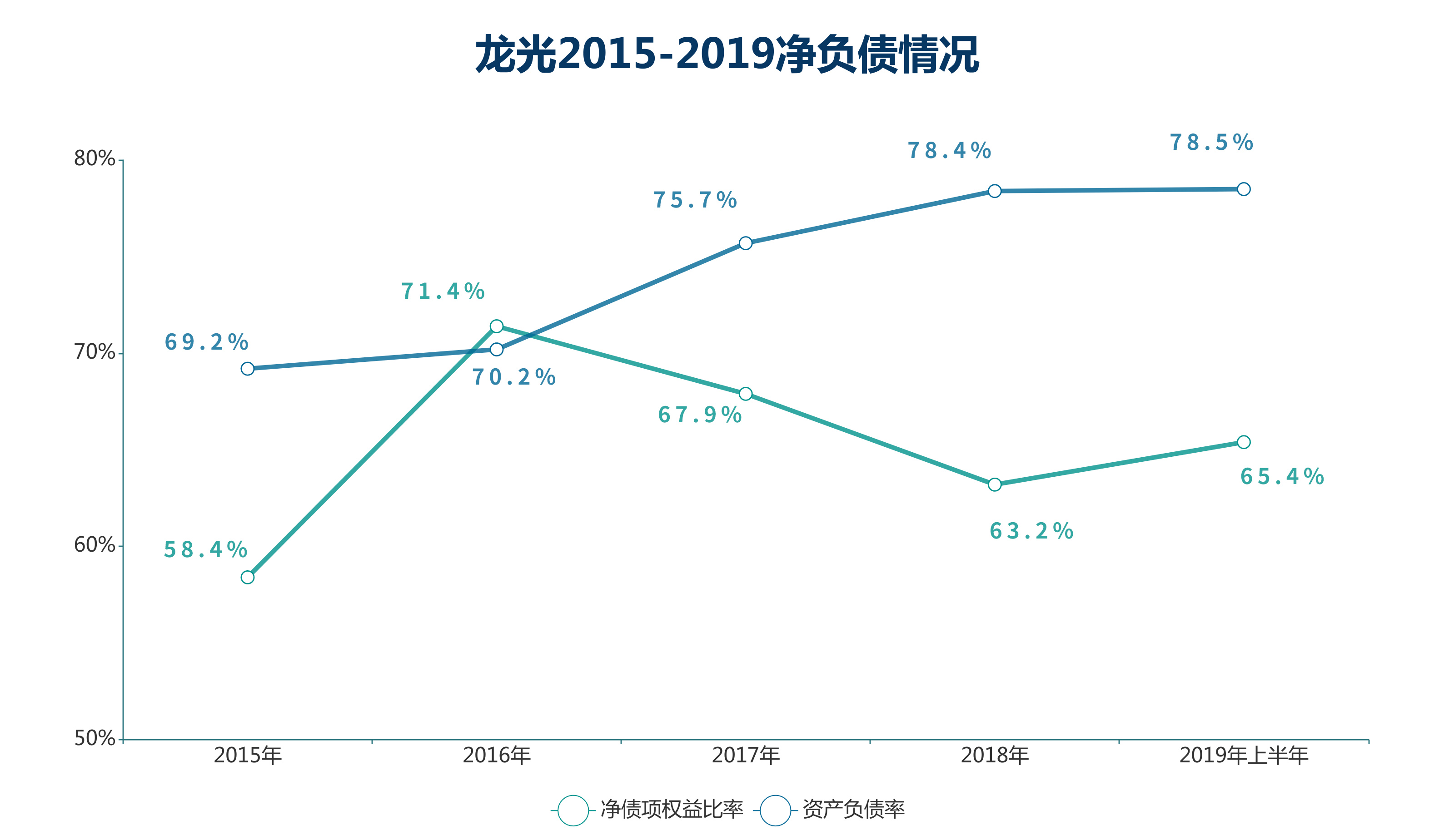 據(jù)觀點指數(shù)統(tǒng)計,2015-2019年上半年龍光凈債項權益比率(即凈負債率)和資產負債率呈現(xiàn)波動上升趨勢,但漲幅不大,低于行業(yè)平均凈負債率。