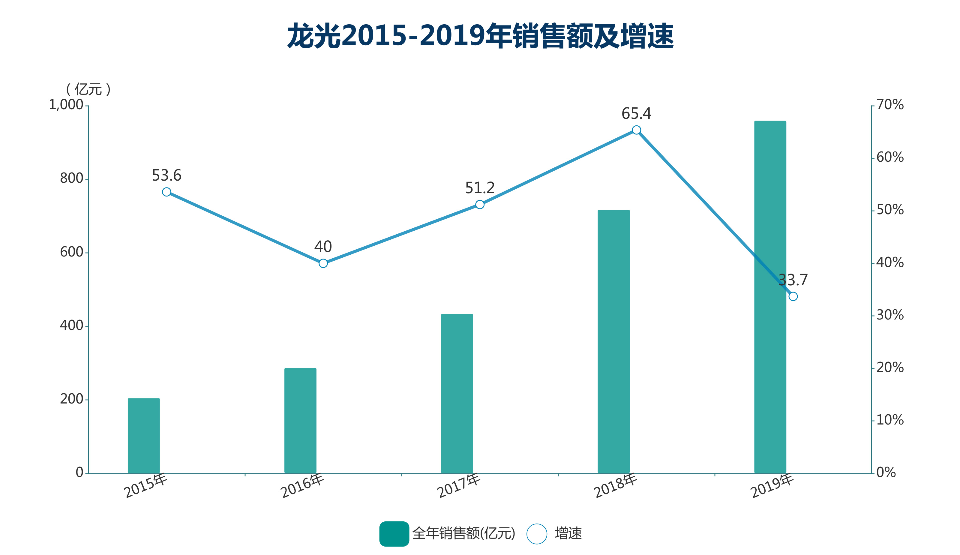 數(shù)據(jù)顯示,2019年,龍光累計實現(xiàn)合約銷售額約人民幣960.2億元,同比增長33.7%。以近5年增速作為對照,2019年為最低。