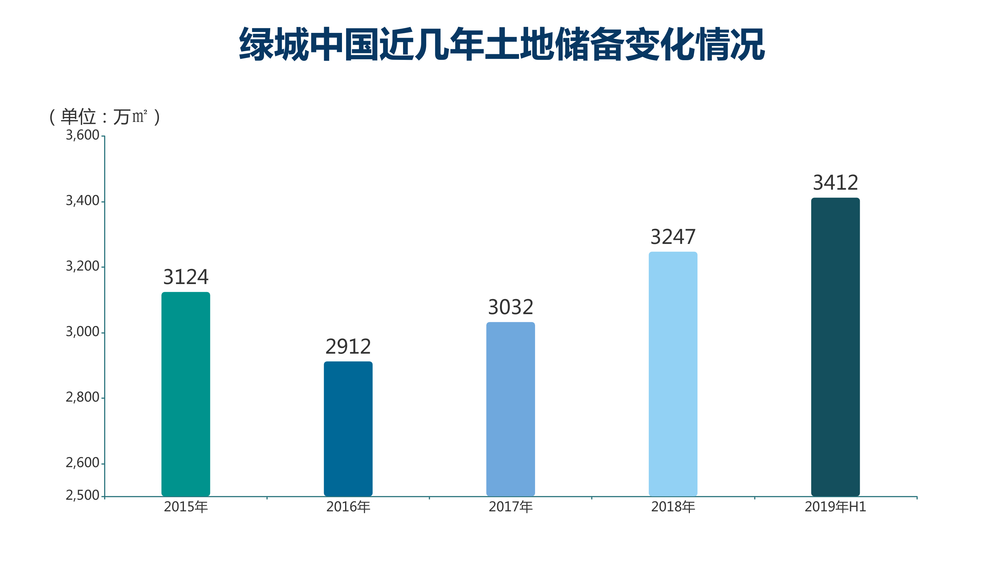 數(shù)據(jù)顯示,從2015年到2019年上半年的四年半中,綠城總土儲一直維持在3000萬平米的水平,相比之下,同等規(guī)模的陽光城已超越4000萬平米,旭輝也有近9800億的可售貨值。
