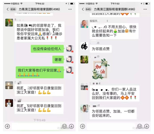 江西省南昌市力高濱江國際的一戶家庭,丈夫出現(xiàn)疑似病例的時候,妻子第一時間告訴鄰居,并自我隔離,隨時更新在醫(yī)院的檢查結果!結果,鄰居們不但沒有排斥他們,反而問寒問暖,大家都輪流準備照看他們家的小孩,做飯,幫看護。上演了一出“中國好鄰居”的溫馨感人畫面!
