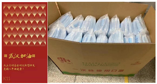 1月26日,新世界中國宣布捐款人民幣1,000萬元給中山大學(xué)附屬第一醫(yī)院,并成為首家在內(nèi)地捐資抗疫的港企,支持包括赴武漢醫(yī)療隊(duì)在內(nèi)的前線醫(yī)護(hù)人員防護(hù)用品的購置,用愛心守護(hù)他們。此外,新世界發(fā)展有限公司也在1月27日宣布捐出逾港幣1,000萬元訂購口罩等防疫用品,派發(fā)給香港居民及集團(tuán)員工,主動幫助社區(qū)抗疫。K11也設(shè)立人民幣500萬元專項(xiàng)基金,運(yùn)送合共200,000個(gè)外科口罩前往武漢,萬眾一心,奮力抵抗疫情。