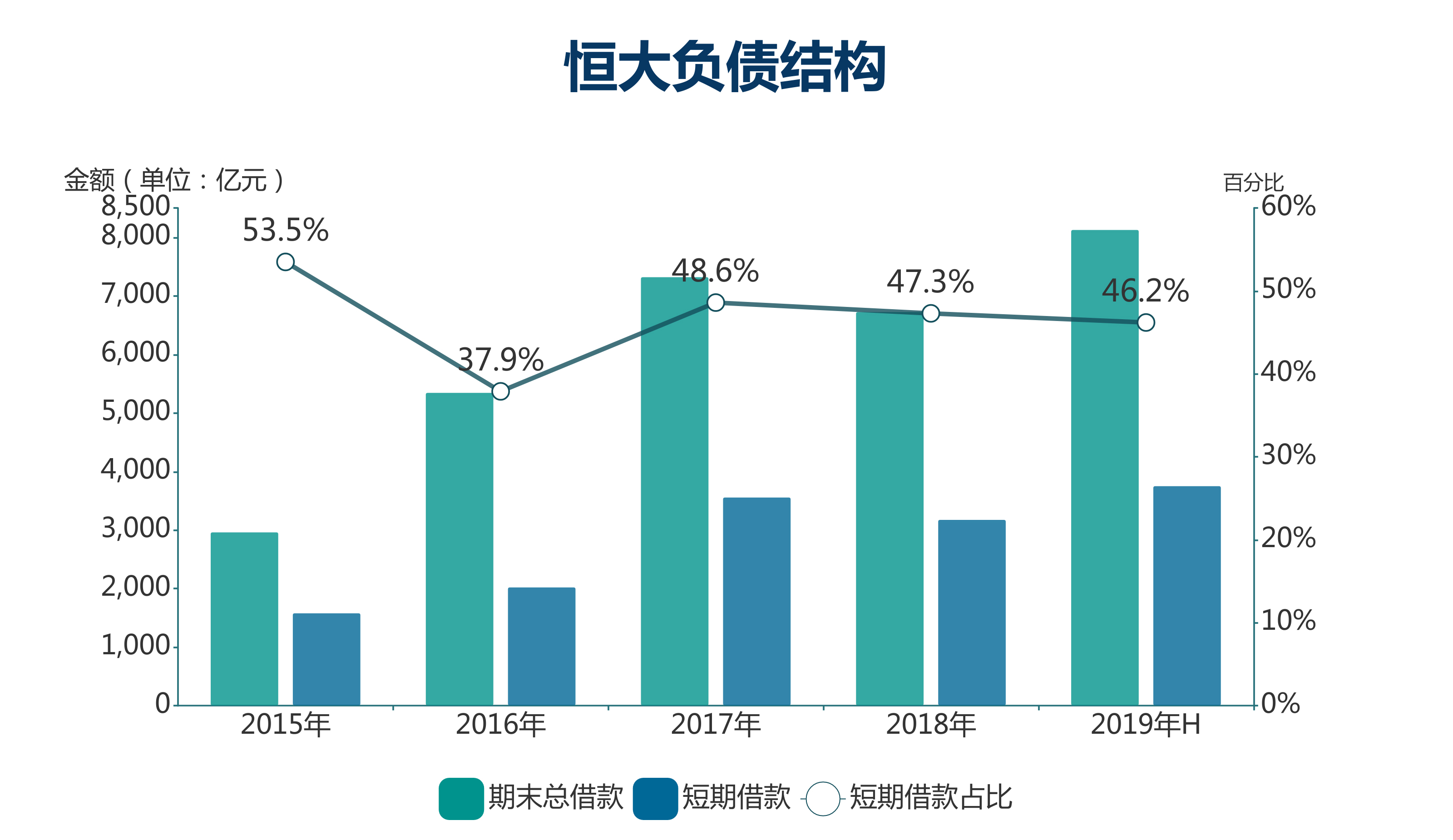 根據(jù)數(shù)據(jù),截止到2019年中期,該公司的短期借款占總債務比46.2%。