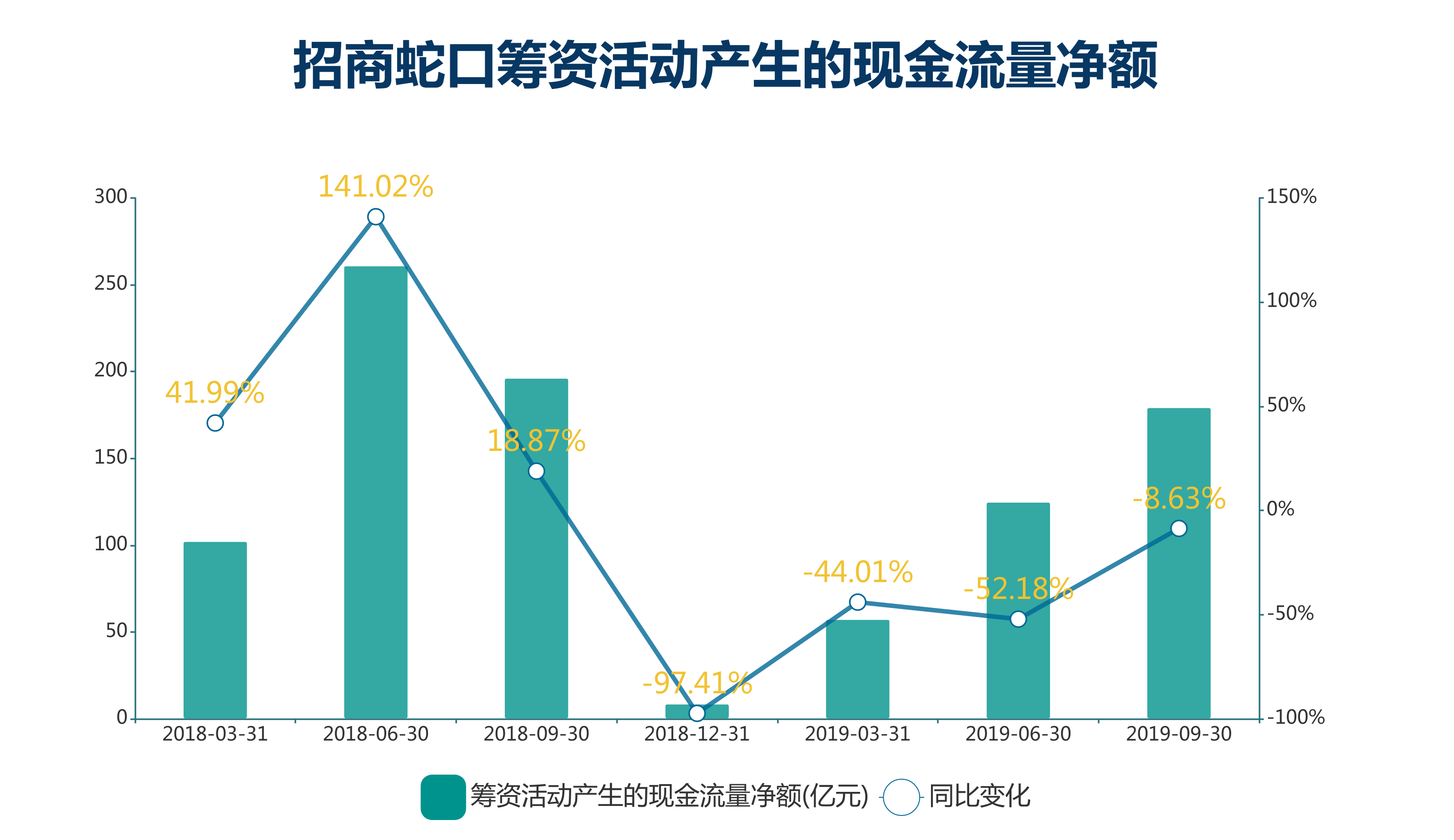 另一方面也可側(cè)面證明招商蛇口為降負(fù)債的努力,數(shù)據(jù)顯示,在2018年末,招商蛇口籌資活動產(chǎn)生的現(xiàn)金流量凈額為8.51億元,較2017年末的328.63億元減少97.41%,招商蛇口對此解釋為償付增加。進(jìn)入2019年,這項數(shù)據(jù)同比持續(xù)保持負(fù)增長,并未隨銷售規(guī)模增長而增長。