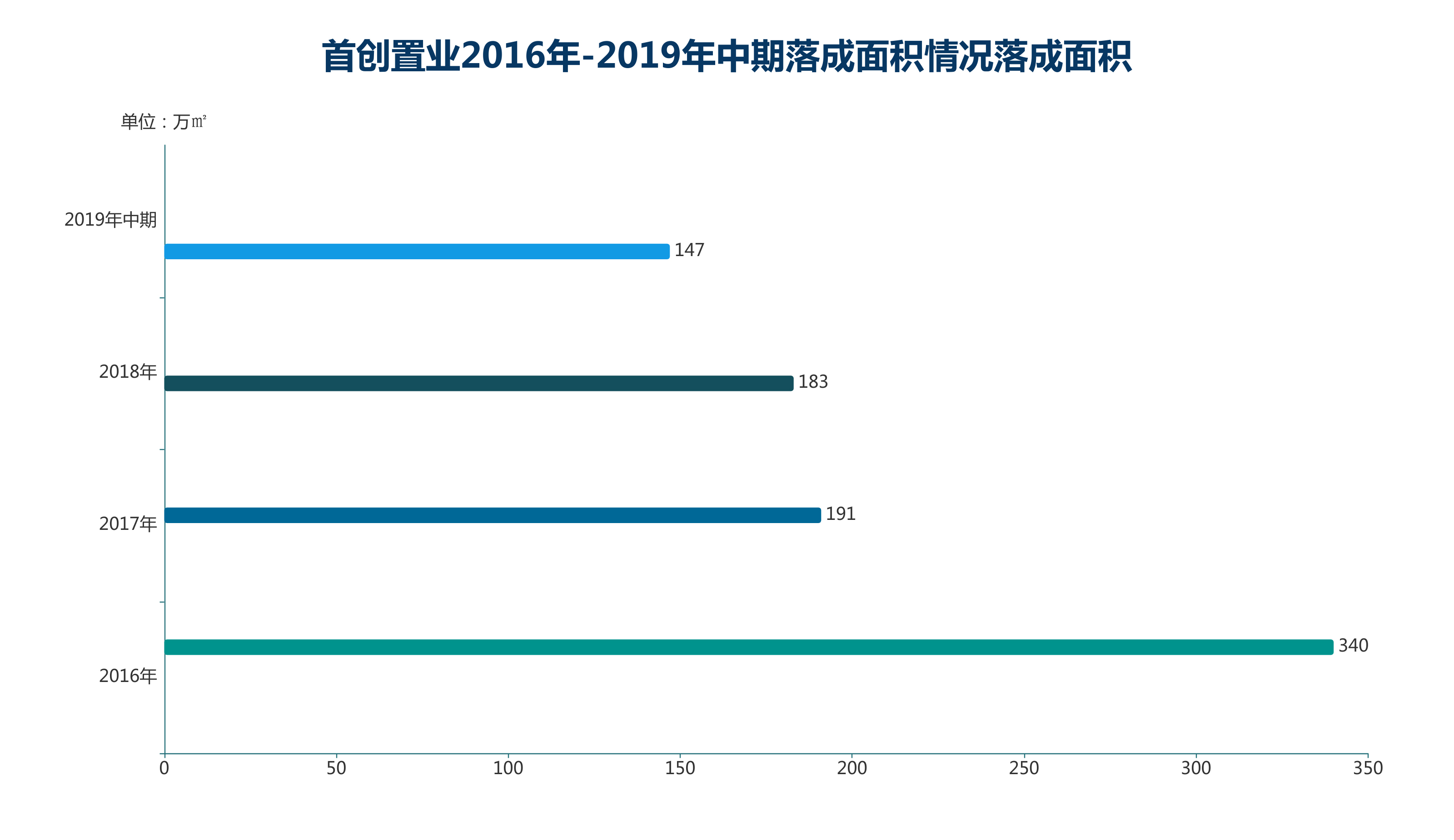 落成面積方面,首創(chuàng)置業(yè)前三年均同比收縮,2016年落成面積為340萬平方米,2017年、2018年分別同比下降43.82%、4.19%,對應落成面積為191萬平方米和183萬平方米,2019年中期同比上升72.74%至147萬平方米。