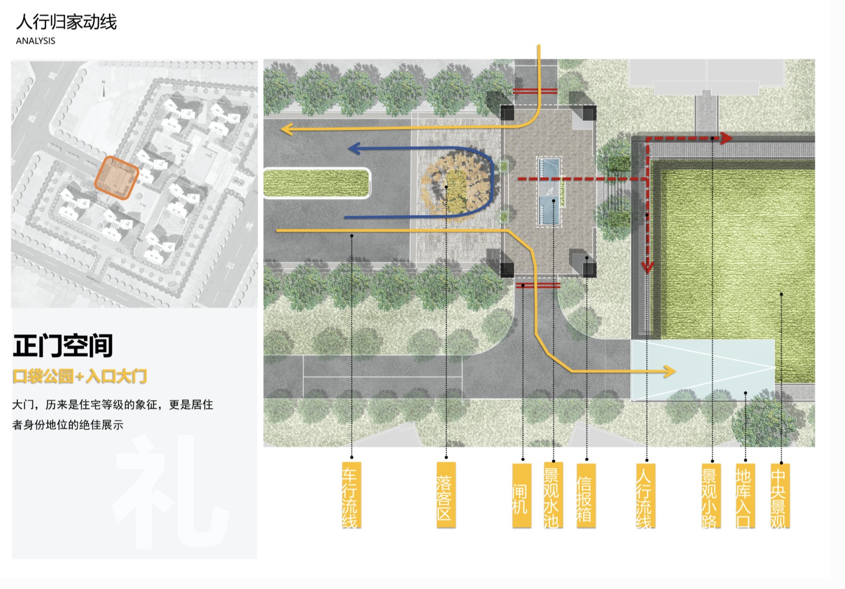 從古至今,大門都是身份及地位的表征,而入戶歸家也常有儀式感。試想住客于繁華街市中歸家,走過前廳,邁向后苑,步履方寸間的入戶體驗(yàn)?zāi)芙o人最為直觀的住宅認(rèn)知。力高在空間規(guī)劃中融入禮制思想,儀式化入口空間。智能化免接觸式社區(qū)大門的設(shè)置,更是在疫情面前倍感安全。
