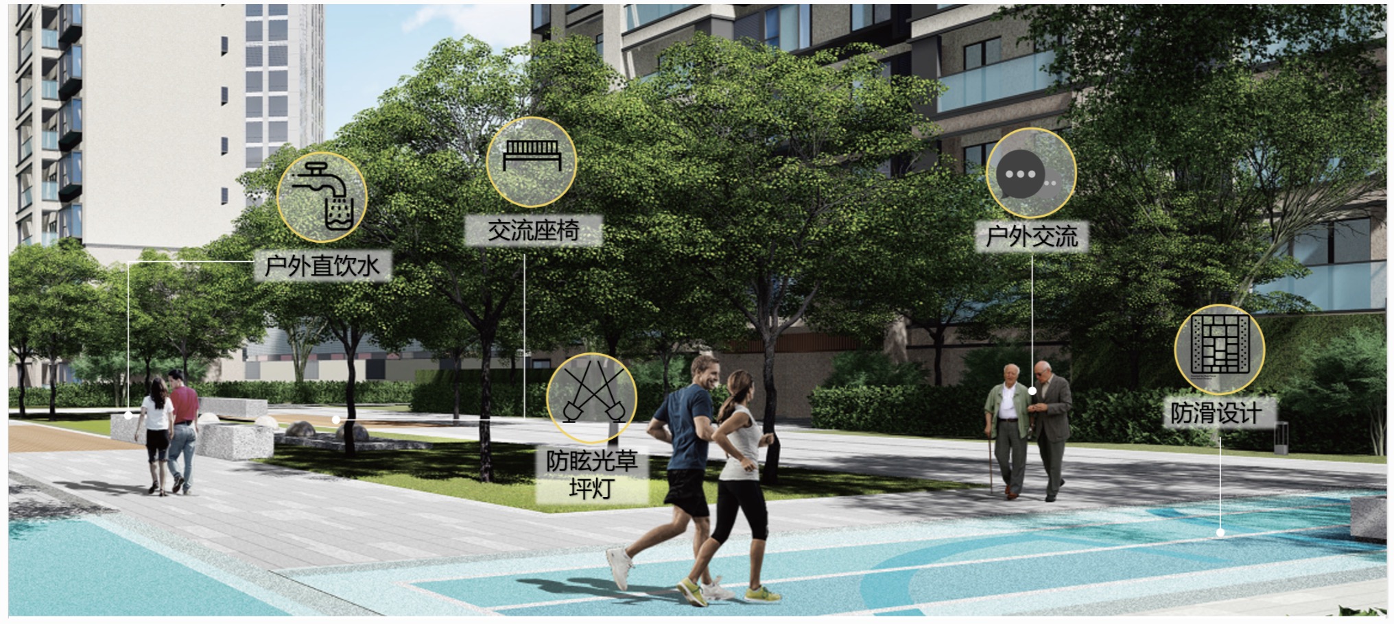 力高在空間規(guī)劃上試圖為全年齡段住客打造理想生活空間。對于精力充沛的年輕人,配置全面的健康跑道,包含健康加油站,和具備多項(xiàng)技術(shù)細(xì)節(jié)的健康跑道,滿足住客的運(yùn)動需求。