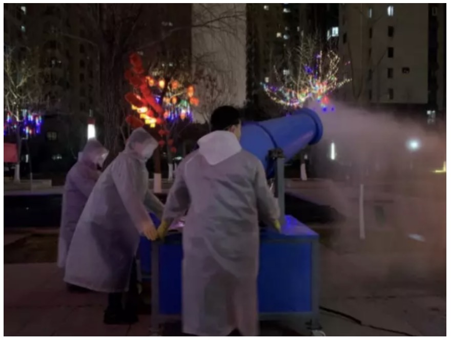 物業(yè)的工作人員在上崗前就已經(jīng)全副武裝,每一名工作人員都配備了全套的防護服、醫(yī)用口罩、護目鏡、一次性醫(yī)用手套等防護裝備,在首先確保工作人員安全的情況下,對園區(qū)的各個角落進行徹底的清潔消毒,大堂、電梯等公共區(qū)域進行無死角覆蓋,針對把手、扶手、電梯開關(guān)等人群高頻接觸的位置,加大消毒頻次。而對地溝、地下室、垃圾中轉(zhuǎn)站等衛(wèi)生死角進行清潔與消殺,同時設(shè)置防疫口罩的獨立回收點,對使用過的口罩進行燃燒處理。而且動用了很多“不常見的消殺設(shè)備”。