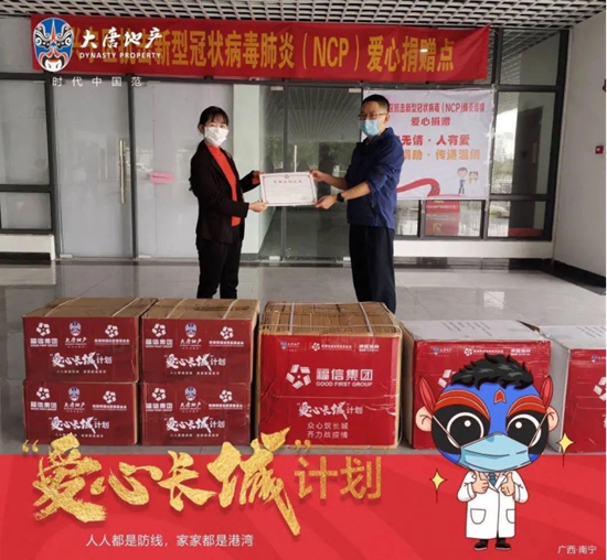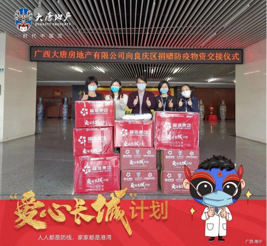 2月25日,大唐地產(chǎn)向南寧多個防疫單位再捐5萬件防疫物資