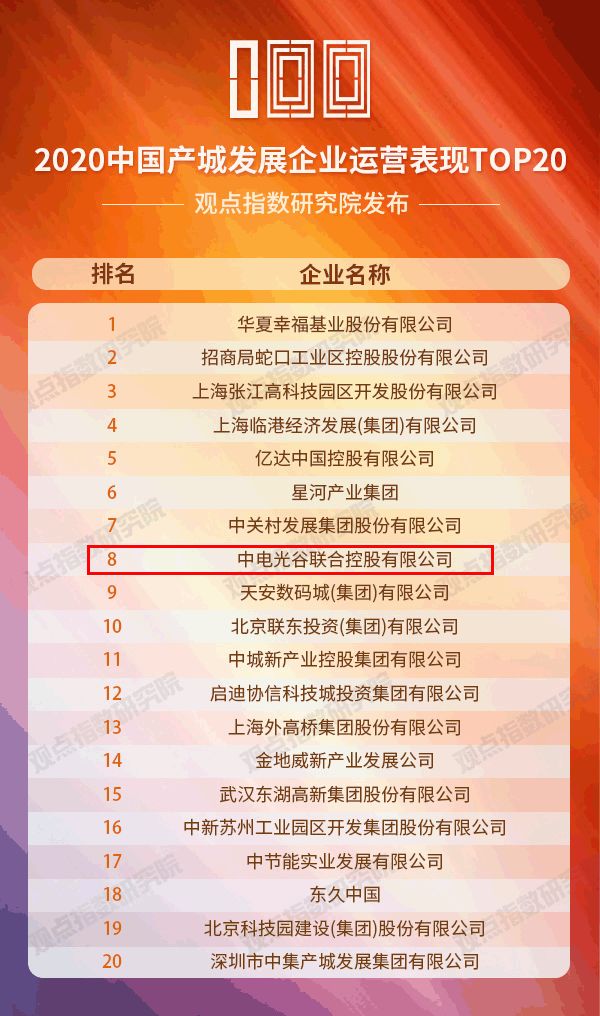 中電光谷榮登“2020中國(guó)產(chǎn)城發(fā)展企業(yè)運(yùn)營(yíng)表現(xiàn)”十強(qiáng)榜單