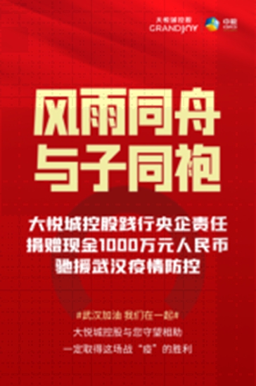 1月29日,面對(duì)武漢市醫(yī)療物資緊缺的難題,大悅城控股快速響應(yīng),通過武漢市慈善總會(huì)捐贈(zèng)現(xiàn)金1000萬(wàn)元,馳援抗擊新型冠狀病毒肺炎前線。資金用于為疫區(qū)一線醫(yī)護(hù)人員提供必要的幫助和保護(hù),包括采購(gòu)調(diào)運(yùn)N95口罩、外科口罩、醫(yī)用口罩等防疫急需物資(耗材)。
