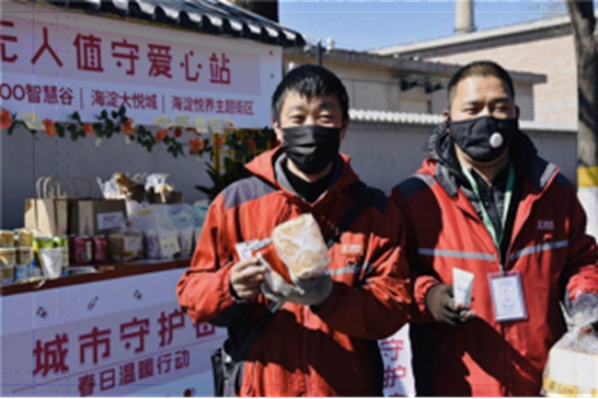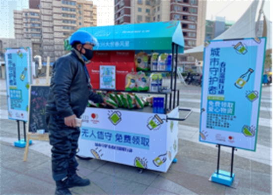 裝滿著愛心物資的無人值守愛心站為城市守護(hù)者提供可免費(fèi)領(lǐng)取的便利物資,向疫情期間堅(jiān)守一線崗位的外賣員、快遞員、警察、環(huán)衛(wèi)工人等城市英雄們致敬。每一杯咖啡,一份點(diǎn)心,一份便當(dāng),一支護(hù)手霜,一瓶中糧可口可樂的“陽(yáng)光檸檬茶”,都傳遞著大悅城控股商業(yè)團(tuán)隊(duì)和合作伙伴們對(duì)城市守護(hù)者們的敬意。