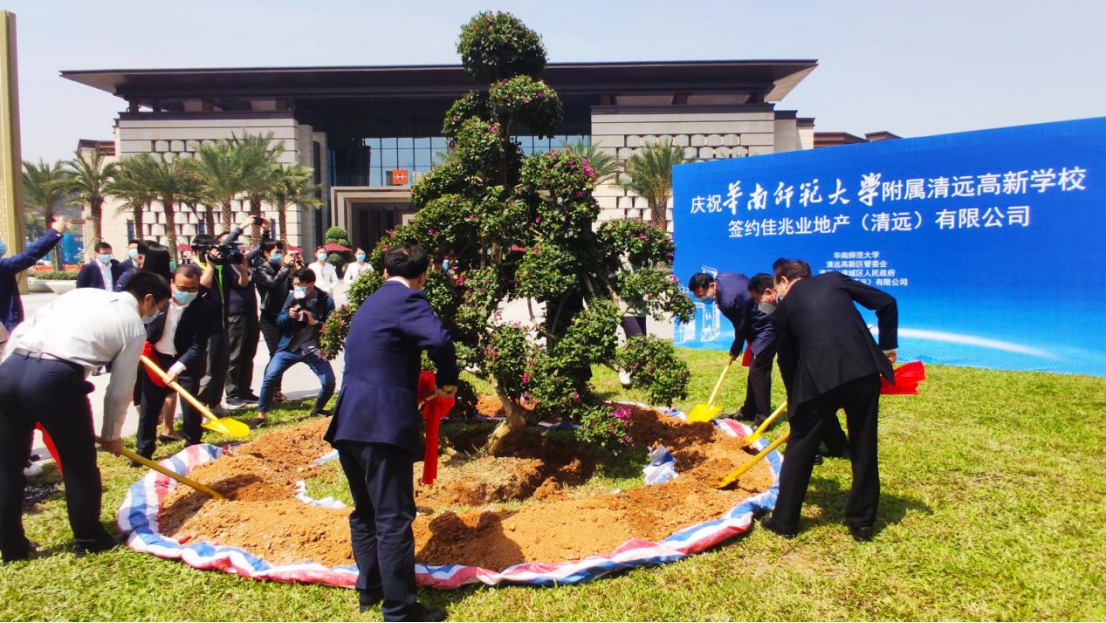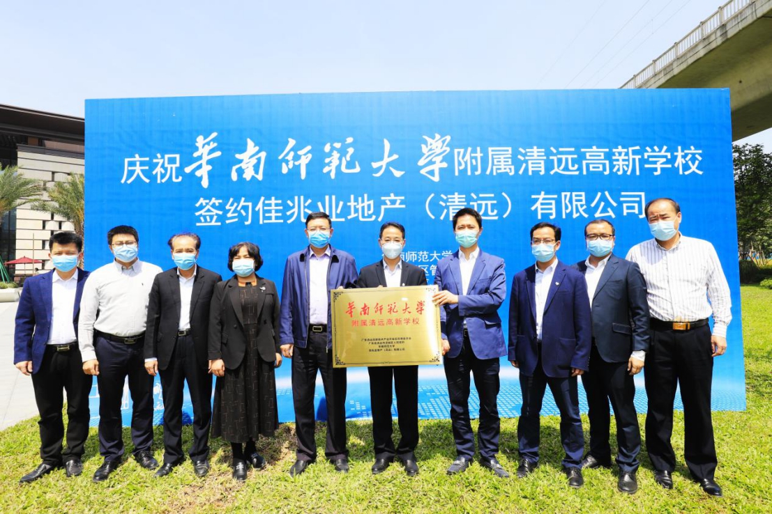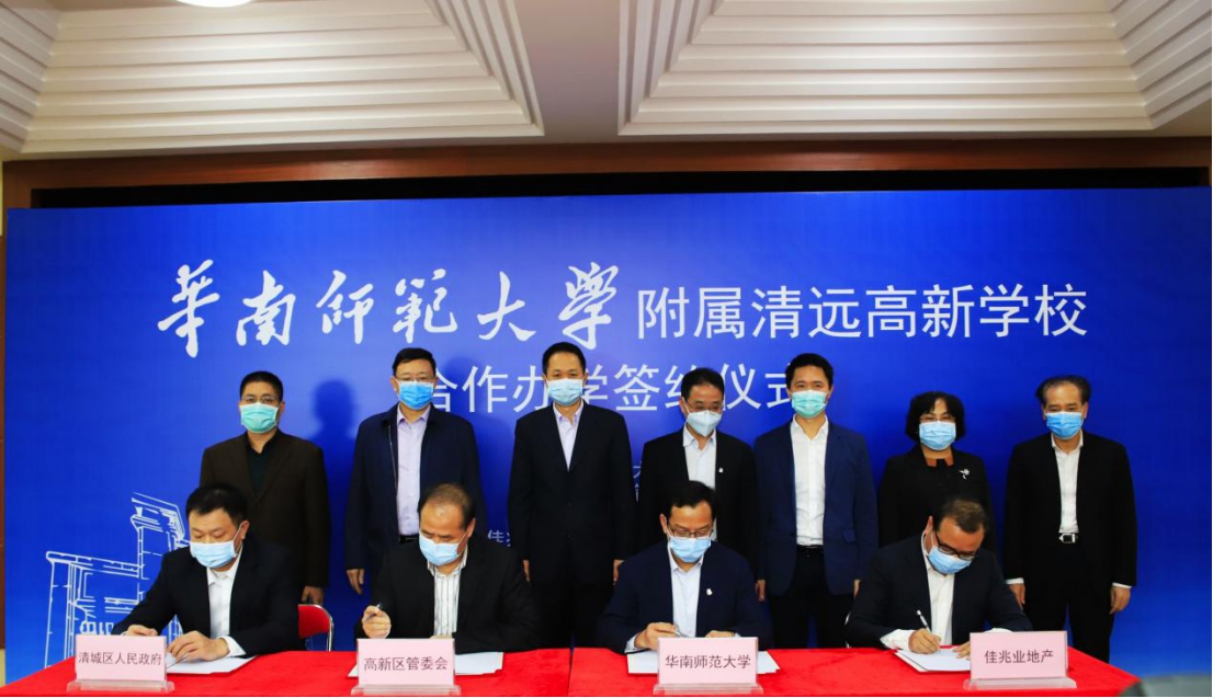2020年4月15日,“華南師范大學(xué)附屬清遠(yuǎn)高新學(xué)校”合作辦學(xué)簽約儀式在清遠(yuǎn)市高新區(qū)隆重舉行。清遠(yuǎn)市人民政府副市長李豐、華南師范大學(xué)副校長陳文海、高新區(qū)管委會(huì)主任周岐賢、清城區(qū)區(qū)委副書記劉秀添、佳兆業(yè)集團(tuán)控股副總裁陳燕坤參與了本次活動(dòng)。