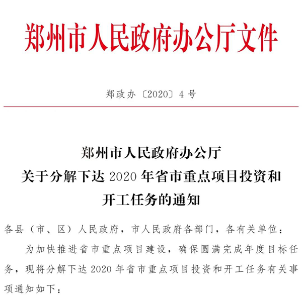 近日,鄭州市人民政府辦公廳下發(fā)關(guān)于分解下達(dá)2020年省市重點(diǎn)項(xiàng)目投資和開工任務(wù)的通知。億達(dá)中國(guó)鄭州科技新城被鄭州市列入力保開工的省市重點(diǎn)項(xiàng)目之一。