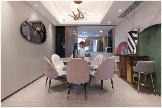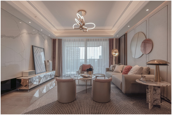 同樣作為"資本圈第一時(shí)尚先生"鄭忠先生的設(shè)計(jì)作品,"雅境"系列185㎡樣板房與熠境的穩(wěn)重、低調(diào)、奢華不同。其在設(shè)計(jì)上更注重體現(xiàn)生活的品質(zhì)以及對(duì)時(shí)尚感的傳達(dá)。整體以淺色調(diào)為主,給人簡(jiǎn)約、高貴的品味感。同時(shí)淺色設(shè)計(jì)也能拉升空間,提升空間感受。高雅、明媚的設(shè)計(jì)風(fēng)格,打造出輕奢華美的空間視覺以及高端時(shí)尚的空間格調(diào),可謂是 "雅致時(shí)尚"的完美呈現(xiàn)。