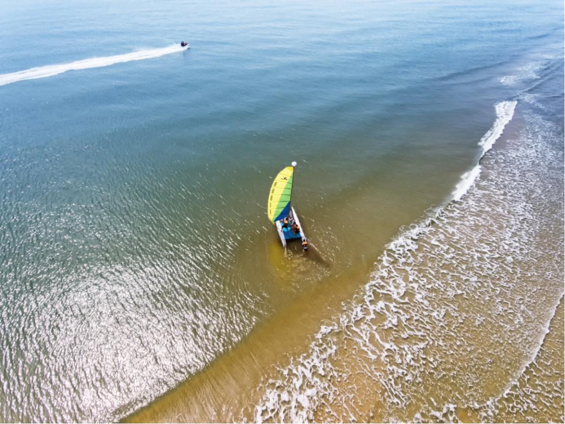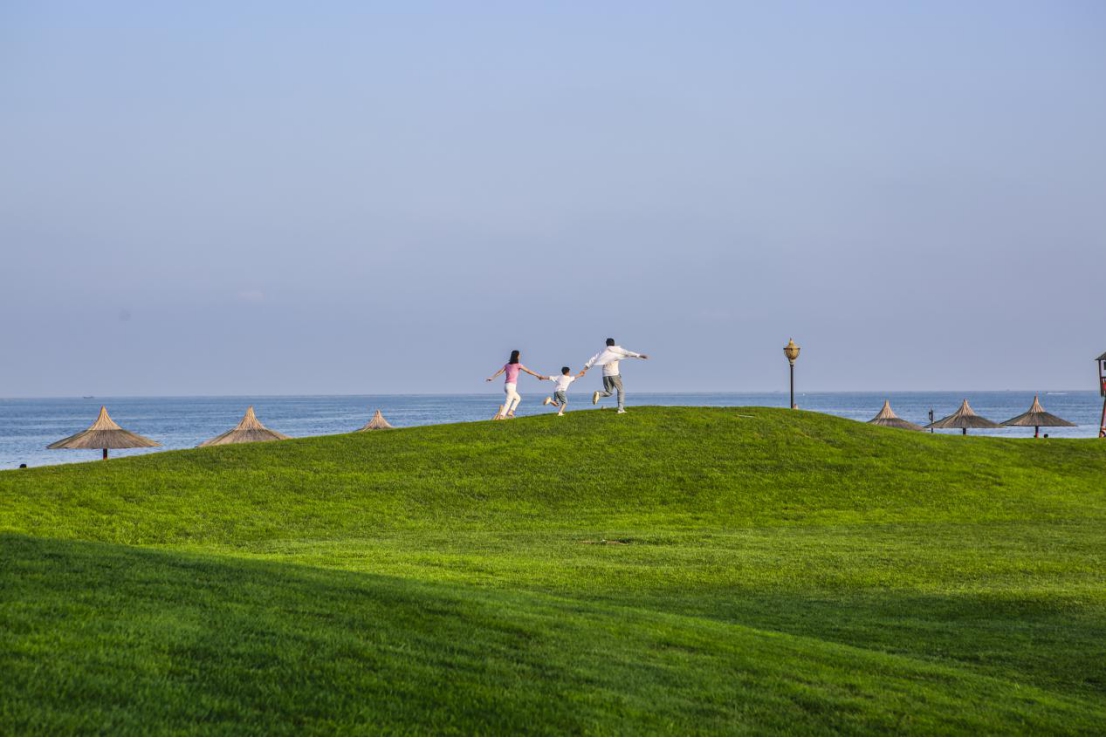 推開五星級酒店的房門,便是媲美東南亞的原生態(tài)蔚藍(lán)大海,浪花輕柔地拍打著連綿不絕的沙灘,與沙灘緊緊相連的濱海草地細(xì)軟如茵,如果不是親眼目睹,你很難相信,這片宛如世外桃源般的黃金海岸離北京只有200多公里、高鐵僅需2小時。