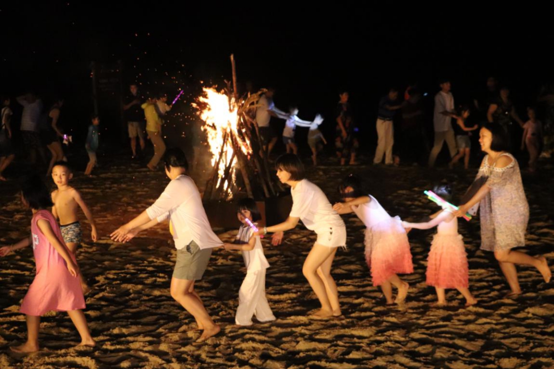 當(dāng)夜幕緩緩降臨,海邊篝火晚會的火光,又會照亮每一張?zhí)煺鏍€漫的笑臉。