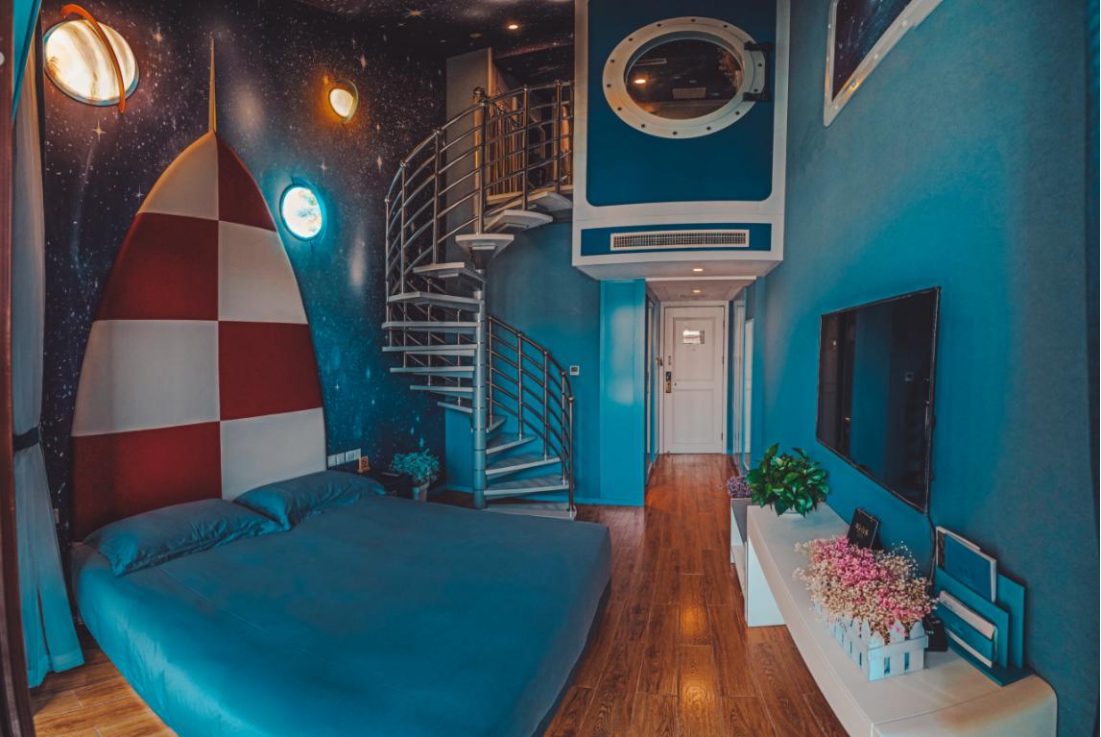 在房間配置上,健康谷600余間客房有216間為親子主題客房,太空漫步、海盜船、可愛豬、粉紅貓等童真主題家庭設(shè)計空間,猶如一個個夢幻小屋,可以滿足任何一個孩子對童話世界、宇宙太空的所有幻想。