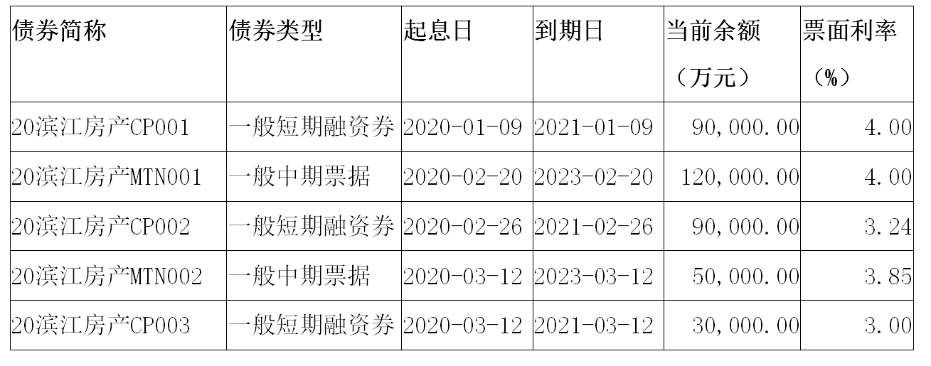 濱江2020年融資情況如下: