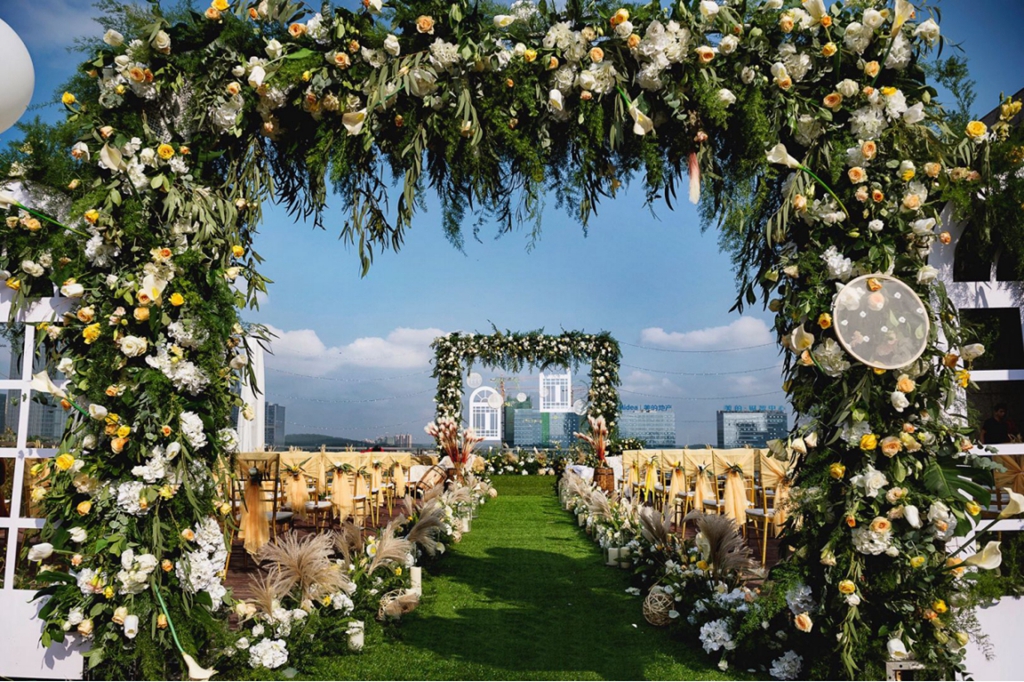 面對廣闊天地、大有可為的消費(fèi)級市場,貴陽國際生態(tài)會議中心進(jìn)行了品質(zhì)化、多元化的業(yè)務(wù)創(chuàng)新。“除了室內(nèi)的婚宴廳,還有三個(gè)位置絕佳的戶外場地——面對中天金融ZTF中心的戶外場地,面朝觀山湖公園的直升機(jī)平臺以及一樓大堂朝向城市地標(biāo)201中心的平臺。”貴陽國際生態(tài)會議中心宴會統(tǒng)籌副總監(jiān)張帆說。