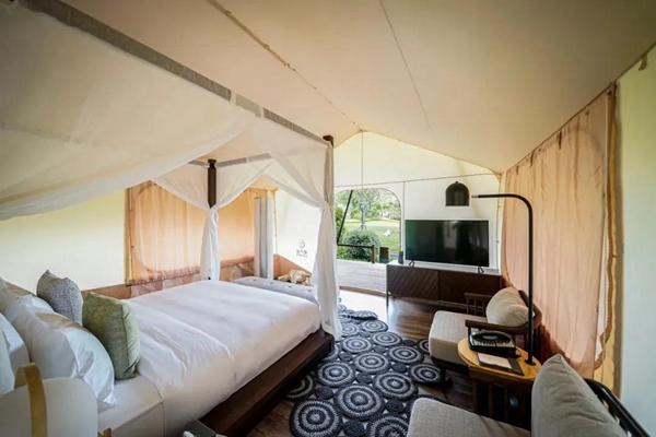 在高端度假酒店系列,木蓮莊則強(qiáng)調(diào)因地制宜,提供休閑度假的多種體驗(yàn)。以本次花都木蓮莊二期發(fā)布為例,項(xiàng)目融合得天獨(dú)厚的自然環(huán)境,匠心獨(dú)運(yùn)地帶來“庭院”“野奢”等不同風(fēng)格的全新旅居體驗(yàn)——秋山居室內(nèi)靜謐簡約的設(shè)計(jì)與公共空間的園林景致相互呼應(yīng),一步一景全然讓人領(lǐng)略詩意般的園林藝術(shù)生活。而臨泉居更有以星空為主題的帳篷客房,時(shí)髦別致的空間設(shè)計(jì)、面面俱到的高端設(shè)施,營造出既有品位又富有樂趣的野奢旅居體驗(yàn)。由此可見,木蓮莊集團(tuán)打造了一系列擁有強(qiáng)大“產(chǎn)品設(shè)計(jì)力”的酒店,已然成為行業(yè)精品酒店中的佼佼者。