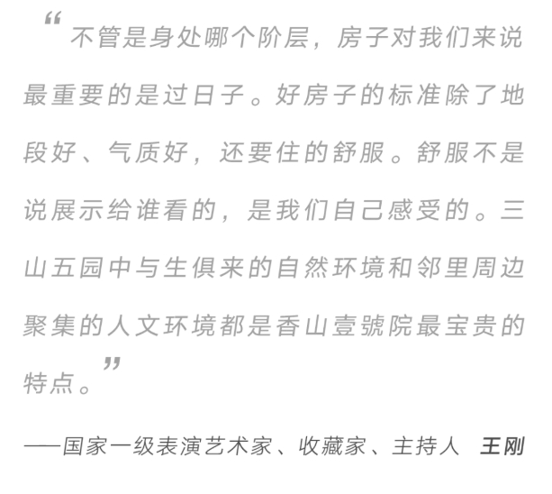 “從建筑機(jī)理語言到格調(diào)塑造,再到產(chǎn)品營(yíng)造端的舒適好用耐久,融創(chuàng)以超前的設(shè)計(jì)理念和全方位的體系規(guī)劃能力,將香山壹號(hào)院打造為一部符合極致審美標(biāo)準(zhǔn)、并且經(jīng)得起時(shí)間磨礪的卓越精品。”