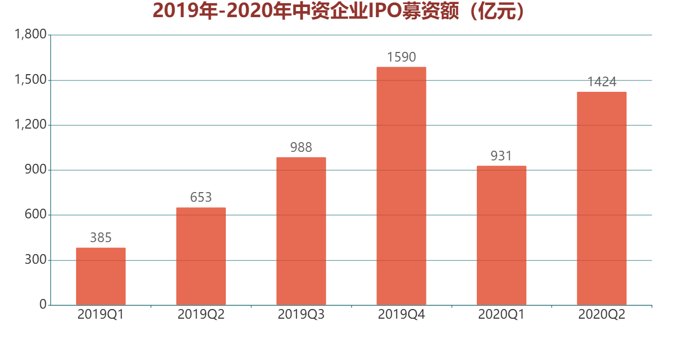 據(jù)數(shù)據(jù)顯示,今年上半年,中資企業(yè)在全球通過IPO募集的資金總額為2355億元,而去年同期只有1038億元。細(xì)化下,今年一季度IPO募資931億元,金額已幾近往年Q1、Q2兩個季度之和,二季度更是飆升至1424億元。