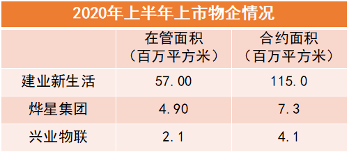 2020年率先上市的興業(yè)物聯(lián)和燁星集團(tuán),體量在上市物業(yè)股里屬于中下水平,如興業(yè)物聯(lián)截止2019年末在管總建面240萬平方米,2019年前三季度收益總額約1.27億元;截至2020年1月28日,燁星集團(tuán)在管面積520萬平方米,2019年前八個月收益約1.75億元。