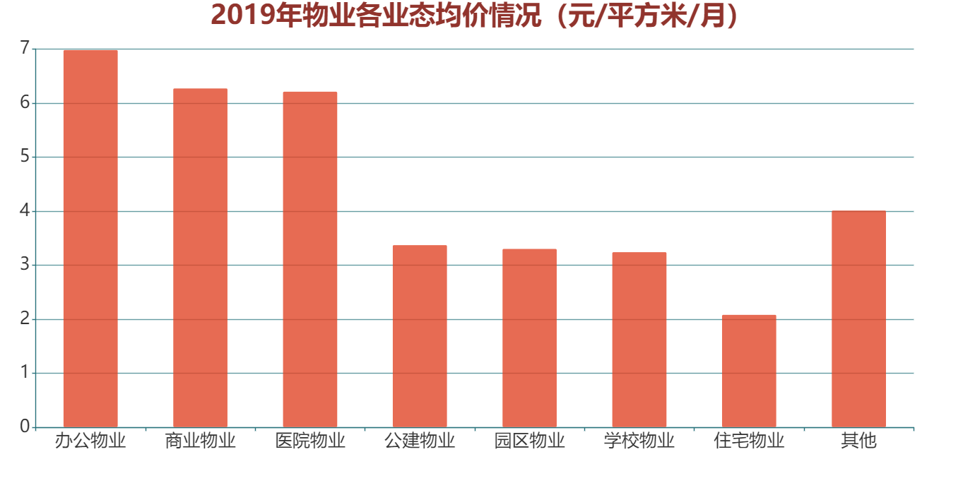 縱然如此,2019年頭部物企物業(yè)費(fèi)價格水平中,商辦類物業(yè)仍是價格水平最高的物業(yè)類型,辦公類物業(yè)的平均價格水平為6.99元/平方米/月,商業(yè)類物業(yè)的收費(fèi)水平為6.28元/平方米/月,而住宅類物業(yè)的收費(fèi)水平僅為2.09元/平方米/月。巨大的價格差距使得近年來物業(yè)企業(yè)越發(fā)重視對非住宅業(yè)態(tài)拓展。