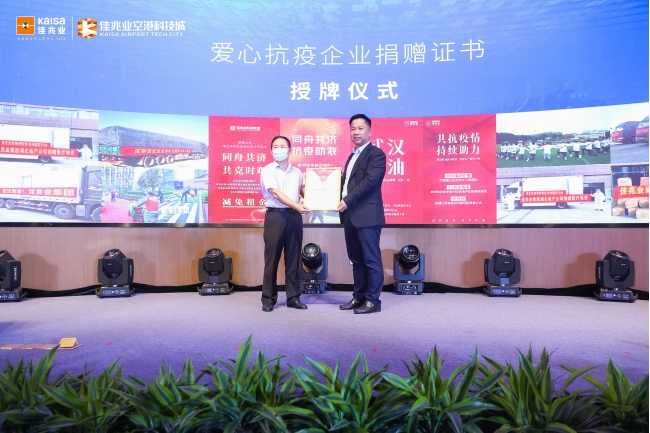 疫情關(guān)鍵時(shí)期,佳兆業(yè)集團(tuán)向武漢市慈善總會(huì)和孝感市慈善總會(huì)捐款共計(jì)1000萬(wàn)元,向孝感市捐贈(zèng)250噸蔬菜,向孝感市臨空經(jīng)濟(jì)區(qū)管理委員會(huì)捐贈(zèng)2.5噸消毒液,為11家醫(yī)院捐贈(zèng)5000套防護(hù)服,以實(shí)際行動(dòng)支持湖北省抗疫工作;疫情常態(tài)化防控期間,佳兆業(yè)集團(tuán)積極響應(yīng)湖北省安全復(fù)工復(fù)產(chǎn)的號(hào)召,快速推進(jìn)佳兆業(yè)空港科技城項(xiàng)目順利復(fù)工,保障項(xiàng)目安全高效運(yùn)轉(zhuǎn);啟動(dòng)區(qū)醫(yī)療先行,并出臺(tái)了針對(duì)醫(yī)療健康科技企業(yè)的重大優(yōu)惠政策,努力打造醫(yī)療產(chǎn)業(yè)示范基地,為促進(jìn)地方經(jīng)濟(jì)恢復(fù)與發(fā)展作出了重要貢獻(xiàn)。會(huì)上,佳兆業(yè)空港科技城榮獲抗疫愛心企業(yè)授牌、生命健康產(chǎn)業(yè)園授牌,社會(huì)公益事業(yè)受到政府領(lǐng)導(dǎo)及社會(huì)人士高度贊揚(yáng)。