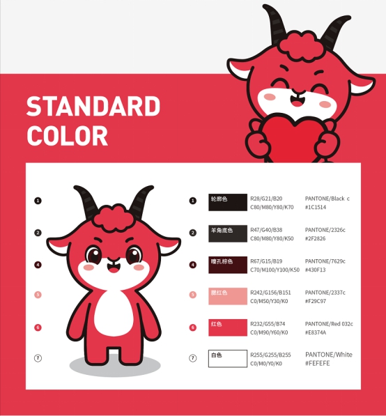 敏羊羊有著紅色的身體、灰白的肚皮,整體線條流暢、自然,以敏捷集團品牌VI體系中敏捷紅、穩(wěn)健灰為主色調(diào)。