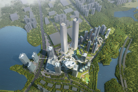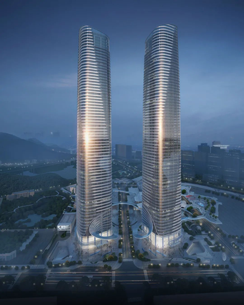 “雙子塔建成后有望成為國內(nèi)最高的雙塔建筑。它自身有著當(dāng)下最頂級的硬件配置,以及完善的商務(wù)配套、商業(yè)配套、文化配套以及產(chǎn)業(yè)生態(tài)體系,我們更通過設(shè)計打造立體生態(tài)綠谷,無縫銜接軌道與都市罕見的真山真水。”