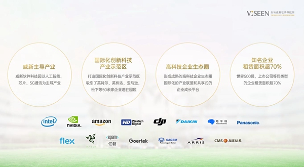 園區(qū)吸引了眾多高精尖企業(yè),世界500強及上市公司的租賃面積超過70%。入駐企業(yè)包括英特爾(世界500強、國際芯片巨頭)、英偉達(世界500強、人工智能芯片巨頭)、大疆創(chuàng)新(無人機巨頭、中國人工智能領域民營科技企業(yè)第一名)、亞馬遜(世界500強、人工智能云服務龍頭企業(yè))、歌爾聲學(聲學龍頭、領先的智能設備生產(chǎn)商)、研強物聯(lián)(領先的智能設備生產(chǎn)商)等。2019年,地平線機器人入駐園區(qū),進一步促進了人工智能產(chǎn)業(yè)生態(tài)的完善。