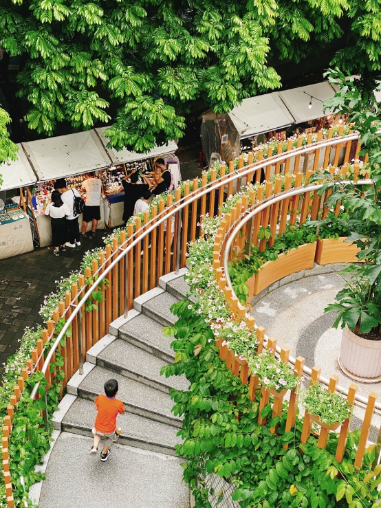 此外,新里由上海新天地及嶺南天地建筑師Ben Wood團(tuán)隊(duì)設(shè)計(jì)。在延續(xù)嶺南古建筑風(fēng)貌的同時(shí)融入現(xiàn)代玻璃幕墻、原木結(jié)構(gòu)等提升空間通透性,并遵循集團(tuán)可持續(xù)發(fā)展理念,堅(jiān)持綠色建筑原則,充分利用“福祿樹(shù)”區(qū)域的天然條件,打造別致庭院休憩功能區(qū),大樹(shù)旁還建造了綠植旋轉(zhuǎn)樓梯,為這片區(qū)域增添韻律感。三層半開(kāi)放式空間內(nèi)穿插了露臺(tái)、連廊、過(guò)道等功能分區(qū),打造靈動(dòng)多變的第三空間,為公眾提供健康、舒適、自然和諧共生的公共空間,滿足日常聚會(huì)、社交體驗(yàn)需求。
